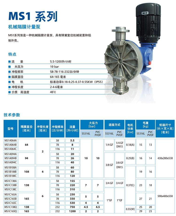 SEKO機械隔膜計量泵MS系列分為MS1、MS3、MS4三個系列