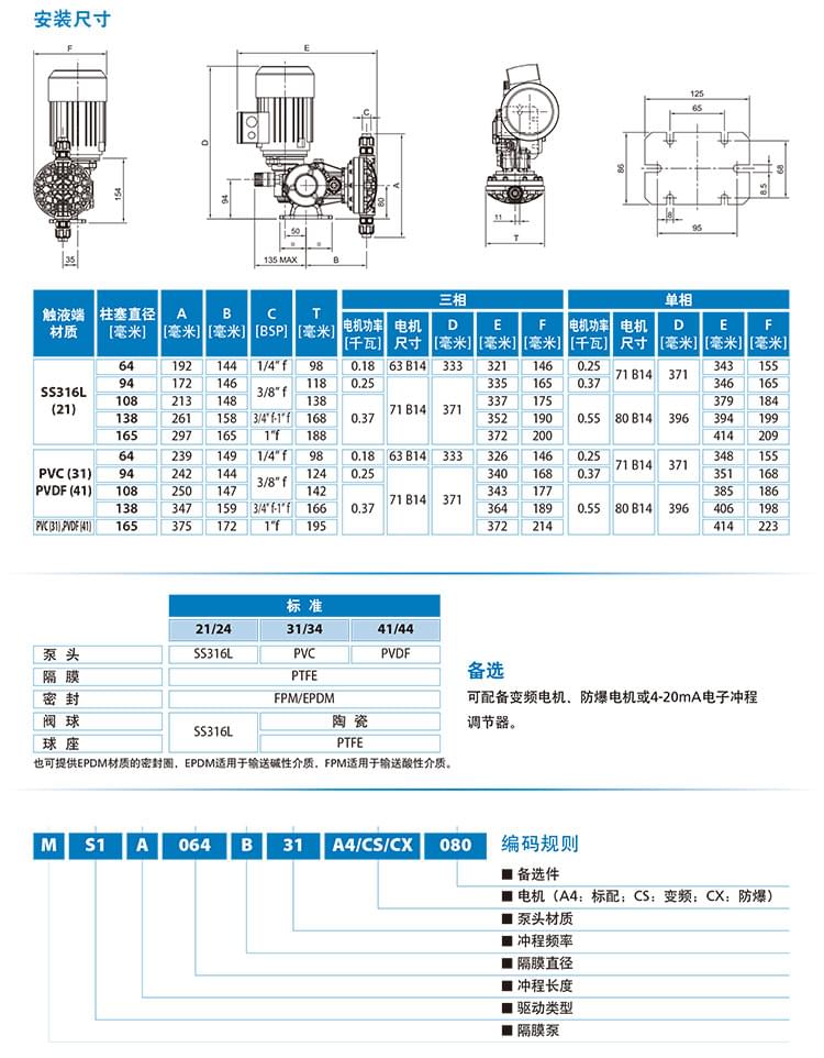 機械隔膜計量泵MS1A064C型特點