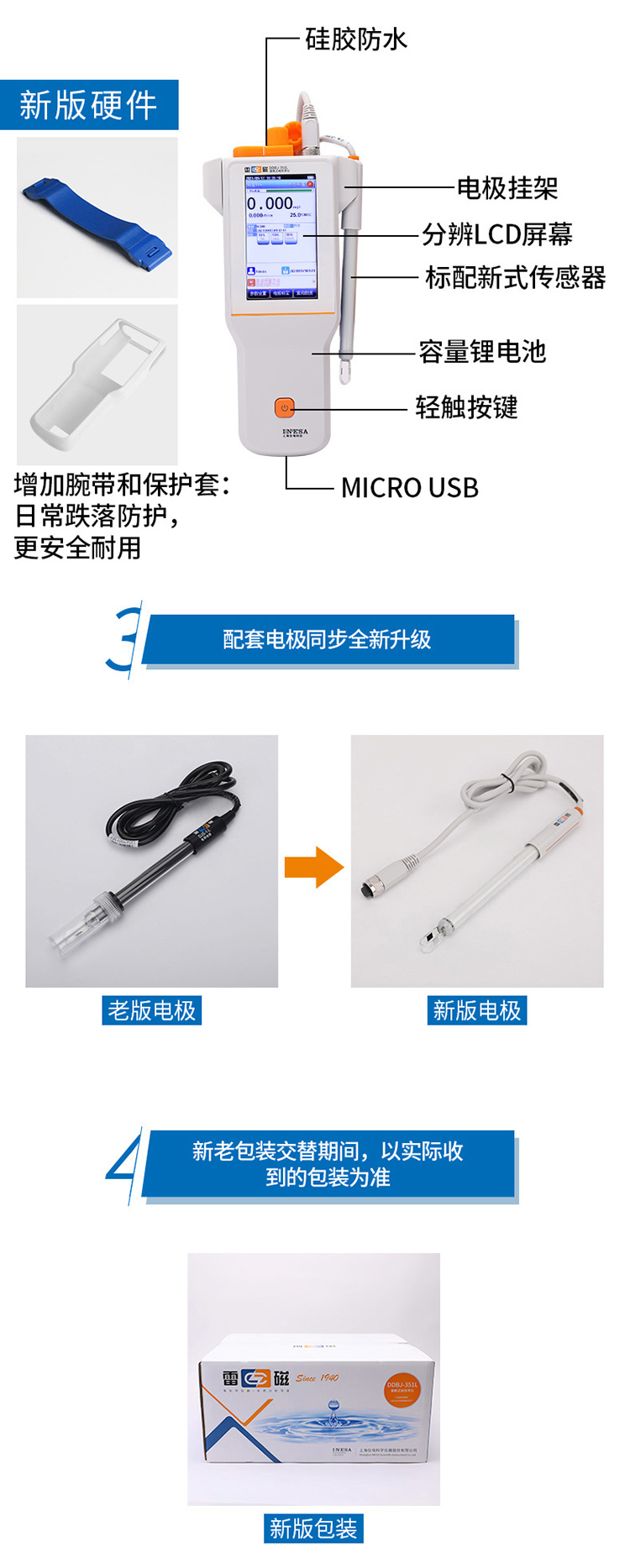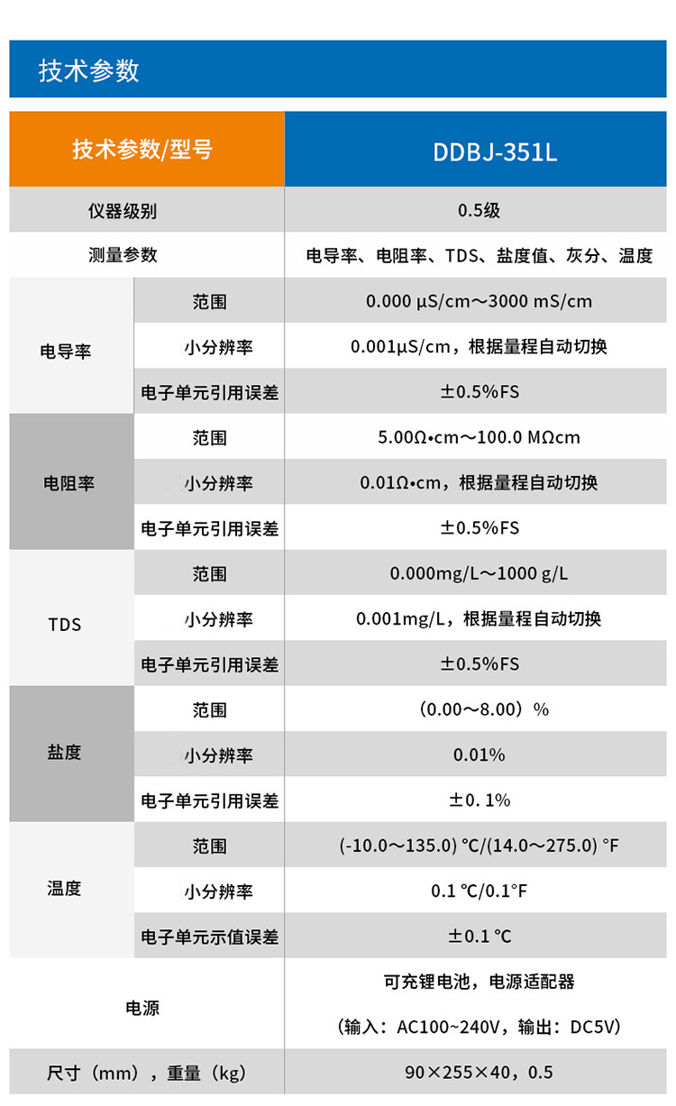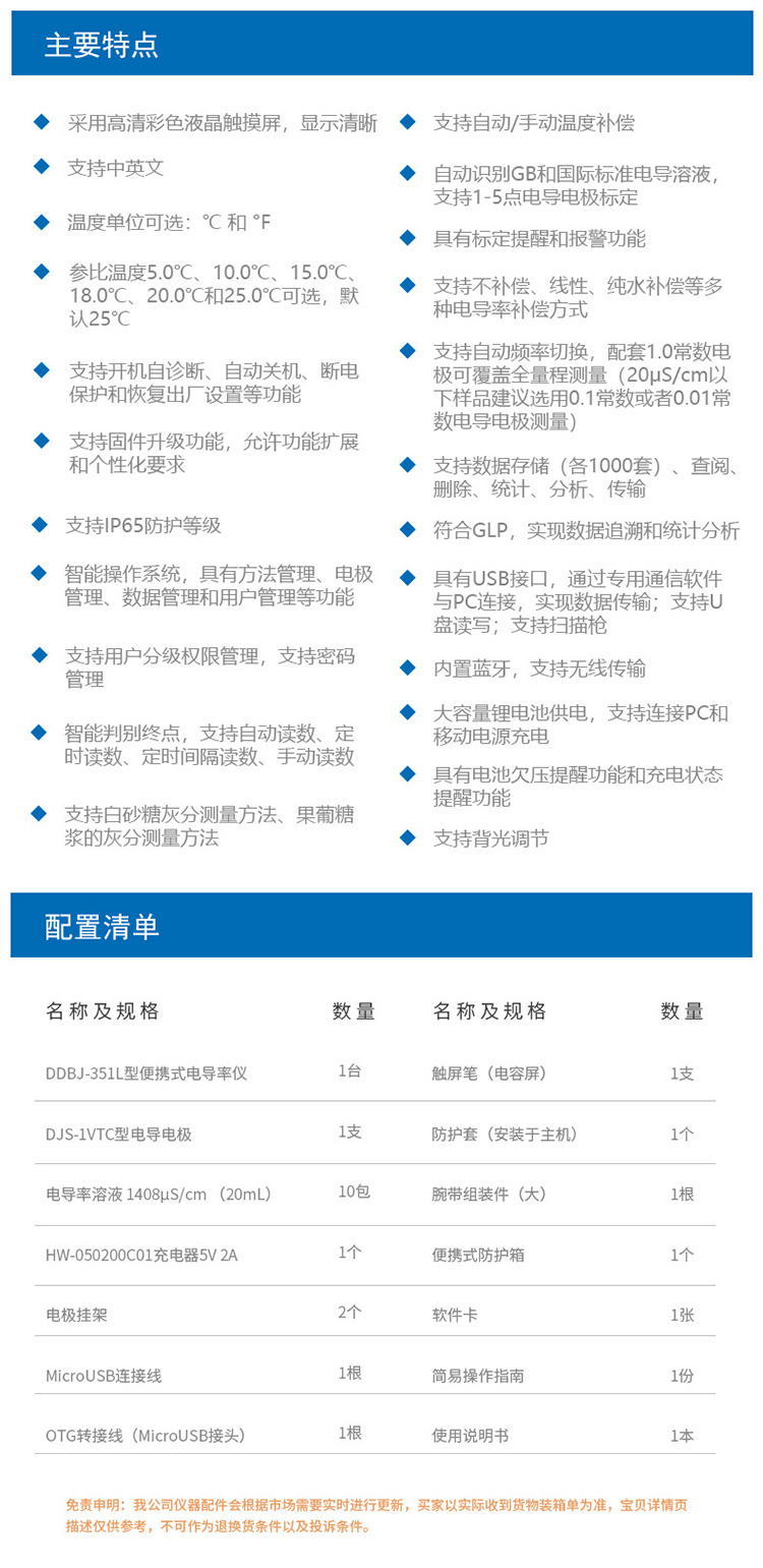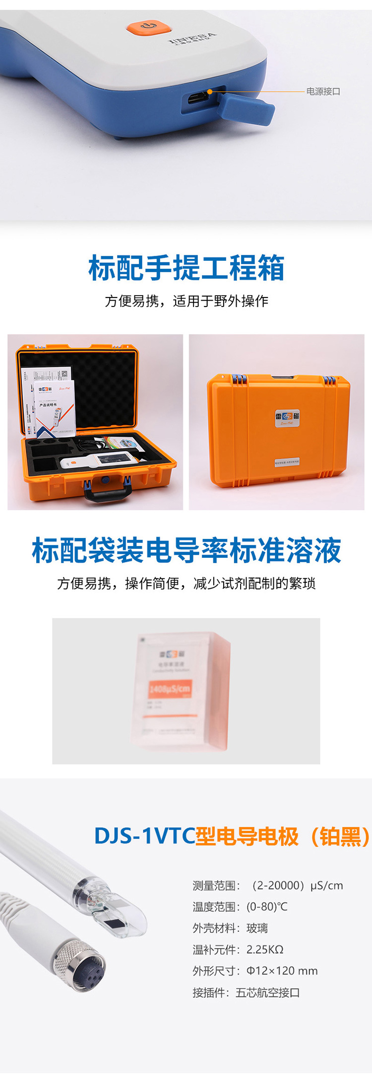 雷磁DDBJ-351L便攜式電導率儀彩色液晶觸摸屏中英文電導率測試儀