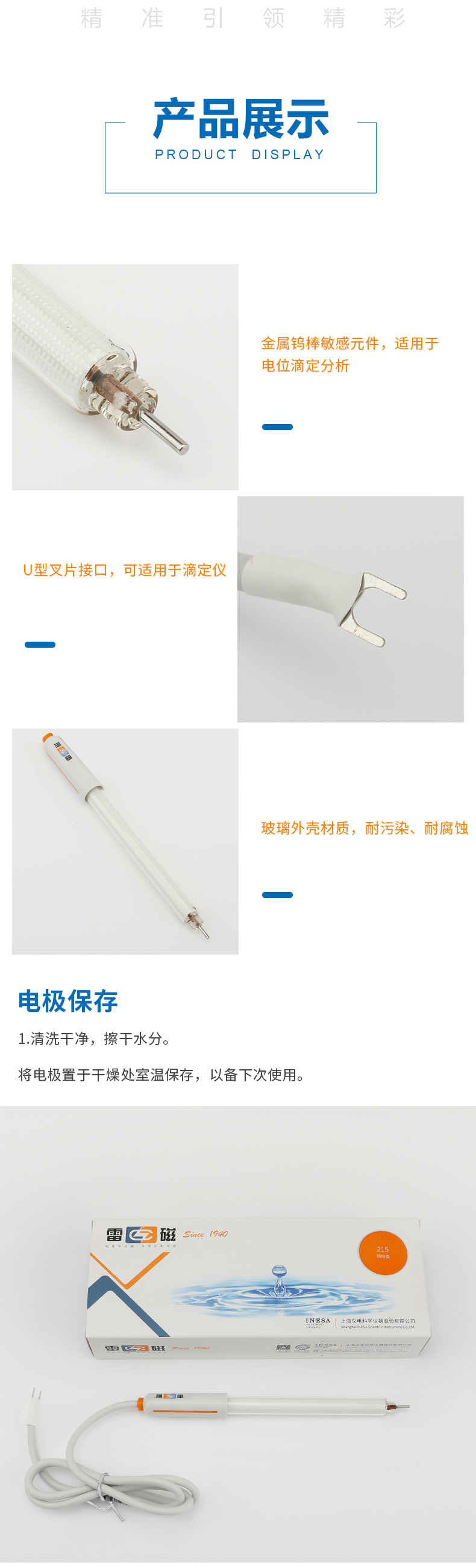 【雷磁】 金屬電極探頭傳感器 鉑銀銻鎢雙鉑 215鎢